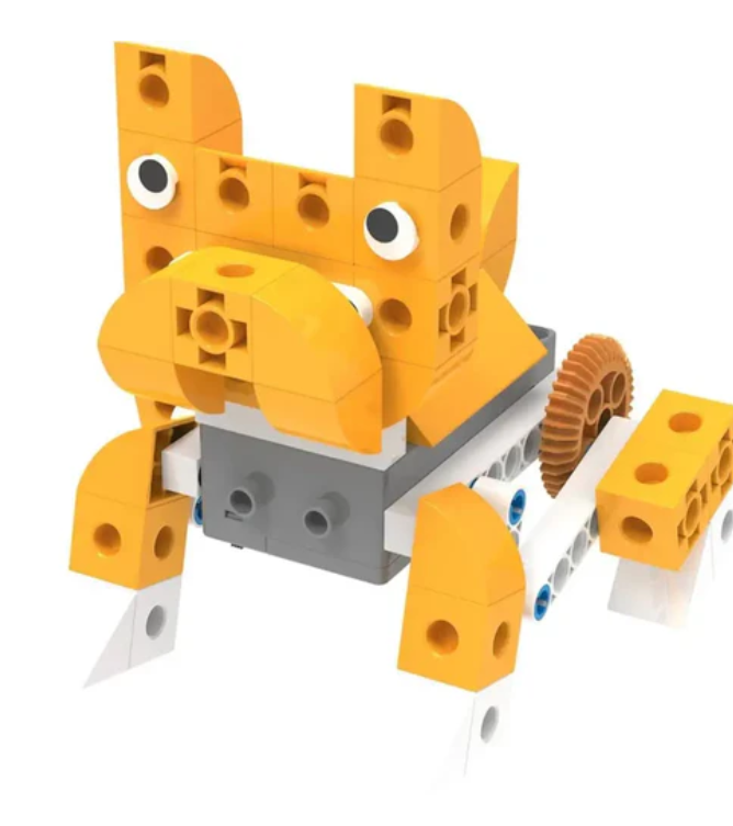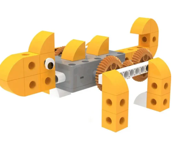 This story takes the characters to a robot pet store where they encounter various adorable robot pets, including owls, French bulldogs, sloths, pandas, chameleons, cats, turtles, and rabbits. As the story progresses, children can build models of these eight robots and experiment with them to see how each robot moves in different ways using battery powered motors and mechanical components. The large and cubic plastic building blocks allow small hands to easily assemble models together.