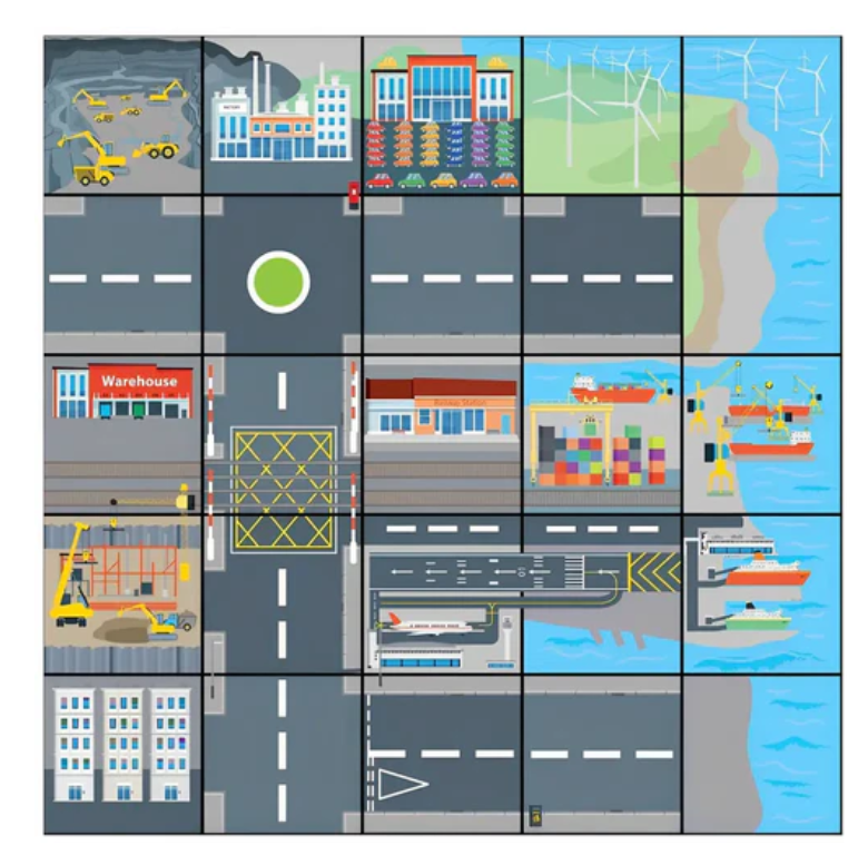 • Use transportation and industrial mats to guide Bee Bot or Blue Bot city tours and explore different forms of transportation and industry!