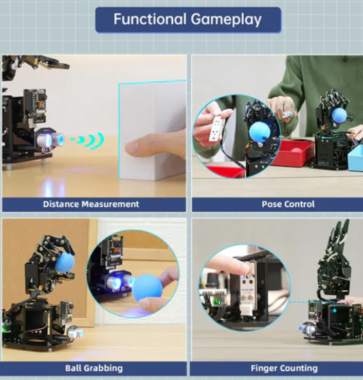 Quickly control the movement of the palm joint through the knob potentiometer, immersing yourself in the seamless operation of the robotic arm.