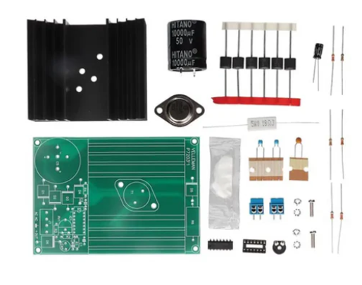 • Of course, this power supply unit can also be used for other purposes. It can even be used as an adjustable power supply unit by replacing the trimmer with a potentiometer. Supplied with heat sink.