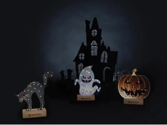 • Once soldered, the LED will emit five different lighting effects, which can be selected with the onboard push button switch. These animations are pre-programmed into the ATtiny chip on the circuit board, so the kit will work when you power it with the included adapter. Place the pumpkin on the fireplace or on a windowsill to scare passersby.