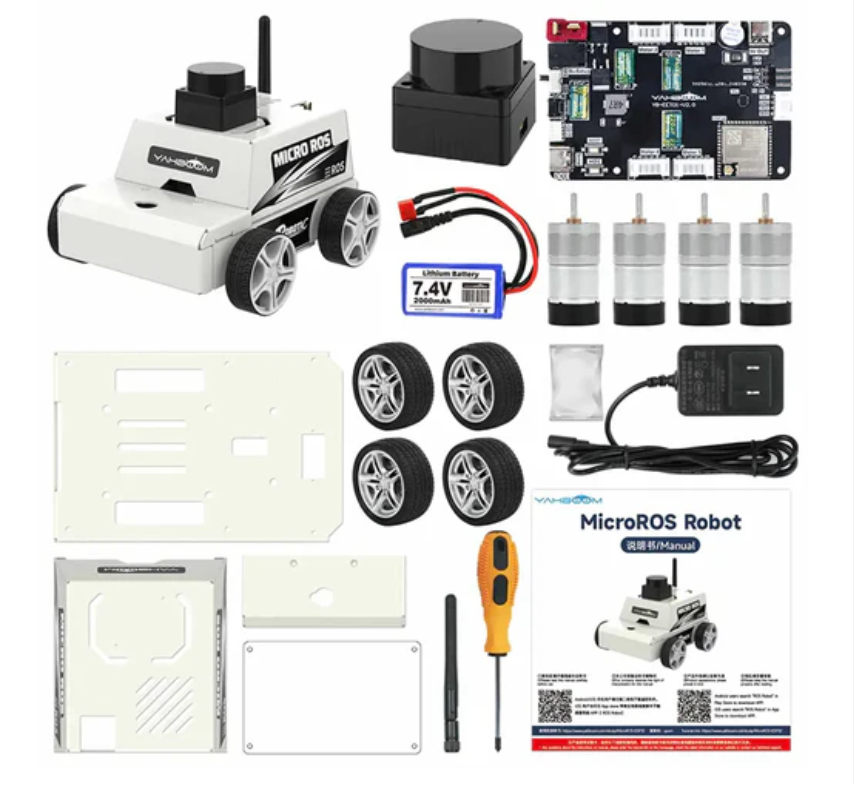 ROS intelligent robot paired with ORBBEC MS200 TOF LiDAR, supports indoor and outdoor mapping navigation, with precise and fast measurement speed; The expansion board integrates ESP32S3 dual core development board, with rich ROS2 driver controllers onboard and built-in peripheral driver firmware programs. Simply connect to the ROS2 environment to use, simple and efficient; 7.4V-2000mAh battery life of 5Hs, MD310Z20 metal encoder motor. HP accessories provide a solid foundation for smooth robot programming