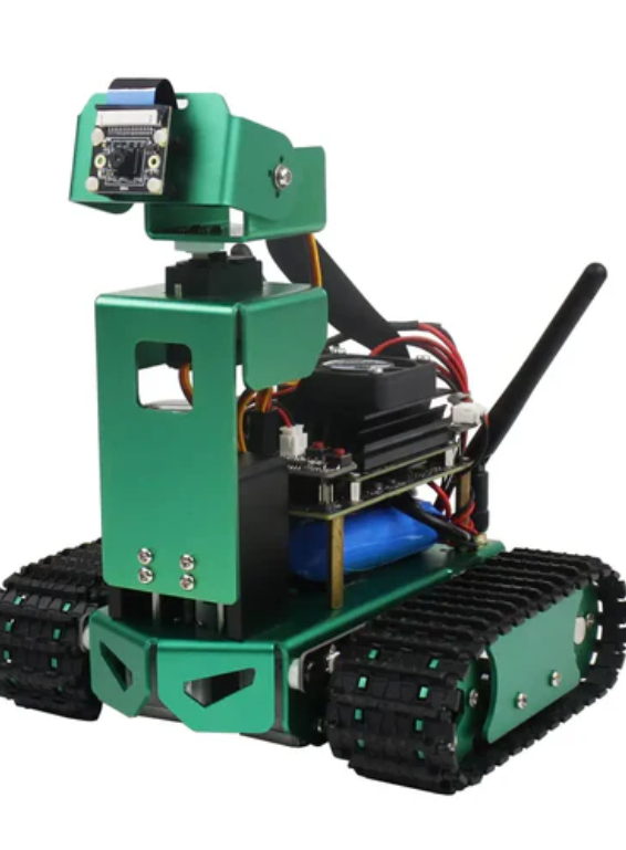 Yahboom Jetbot Standard Edition AI robot with high-definition camera, suitable for Jetson Nano 4GB (without Jetson Nano board) is a multifunctional AI intelligent robot car based on Jetson Nano 4GB (A02/B01/SUB), which can quickly respond to various visual games. The car is made of green aluminum alloy, coupled with a unique mechanical structure, making its appearance unique compared to other cars. It is equipped with a 3-degree-of-freedom lifting platform and an 8-megapixel high-definition camera, which can view the surrounding environment in real time. It can also be used for automatic obstacle avoidance, object tracking, color recognition/tracking, detecting desktop edges to prevent falls, and more. You can also train various runway models and use Jetbot to complete autonomous driving functions. Programmable RGB light strips are also designed on both sides to provide bright and colorful lighting in dark environments. Users can remotely control it through an application or controller, and we will provide a large number of reference tutorials for users.