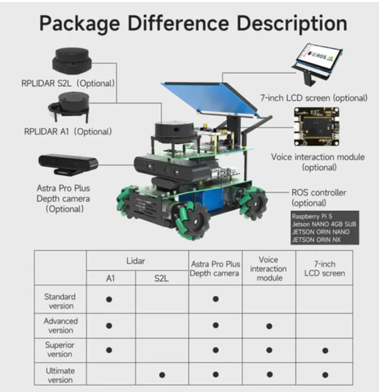 Jeston NANO 4GB SUB version (including Jeston NANO 4GB SUB board) and supports ROS1&ROS2